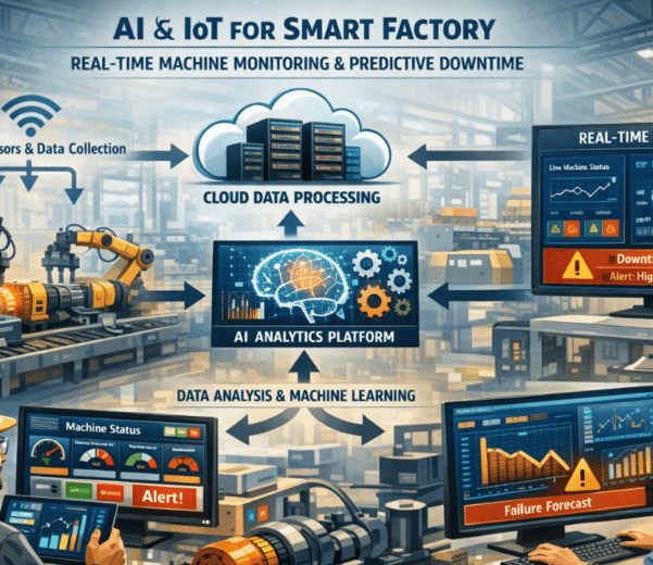 Kami menyediakan solusi Internet of Things (IoT) yang memungkinkan perangkat, mesin, dan sistem industri saling terhubung untuk mengumpulkan, memproses, dan menganalisis data secara real-time. Dengan teknologi IoT, perusahaan dapat meningkatkan efisiensi operasional, mengoptimalkan penggunaan sumber daya, serta meningkatkan keamanan dan produktivitas.