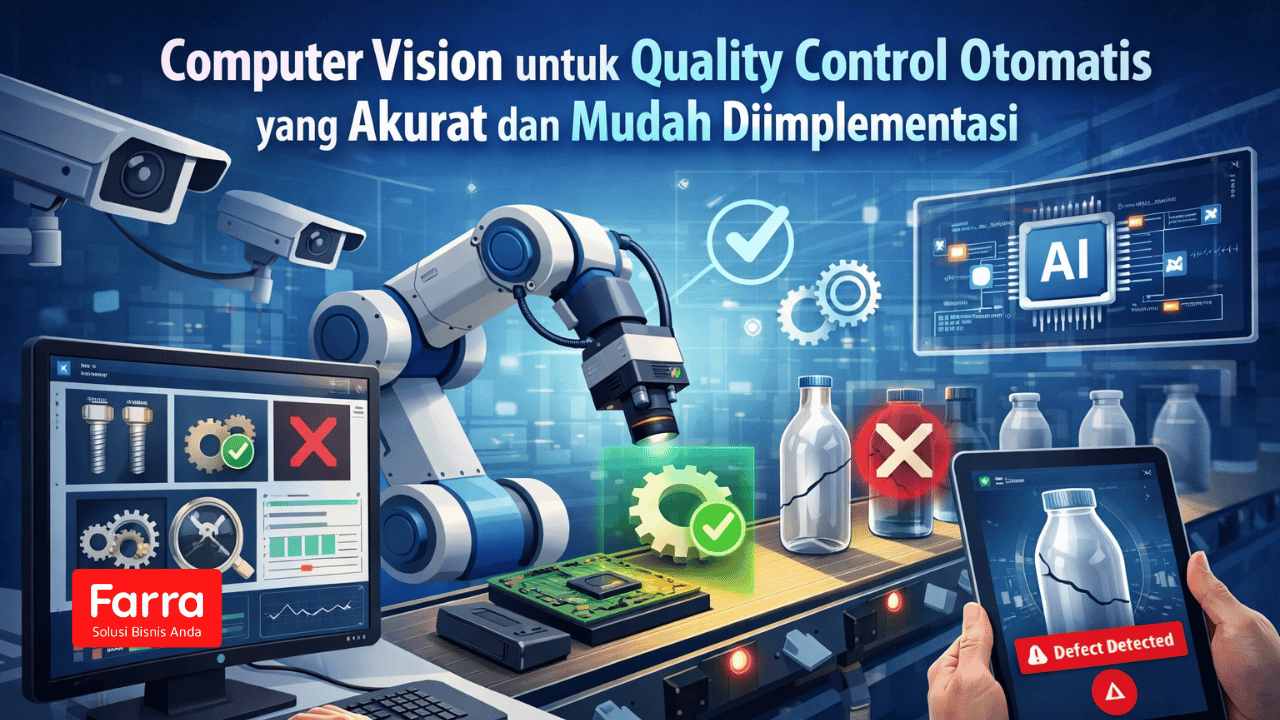 Computer vision QC adalah penerapan kamera dan analisa AI untuk memeriksa kualitas produk secara otomatis sehingga cacat bisa terdeteksi lebih cepat dan konsisten dibanding inspeksi manual.
