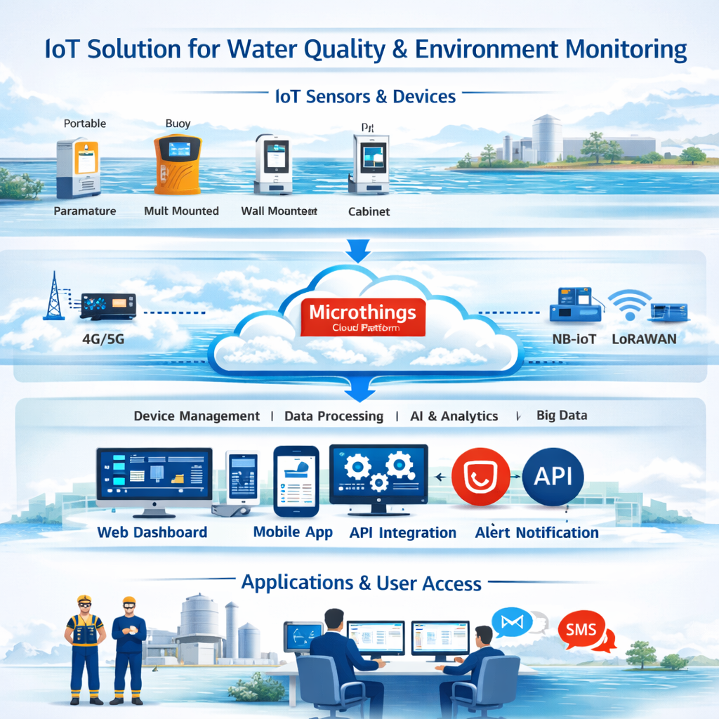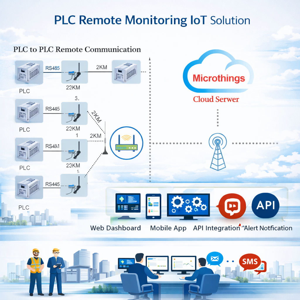 Sistem ini memungkinkan berbagai perangkat seperti sensor, meter, dan perangkat otomasi industri untuk mengirimkan data secara real-time ke Platform Cloud Microthings, sehingga pengguna dapat melakukan monitoring, analisis data, dan pengendalian perangkat secara jarak jauh.