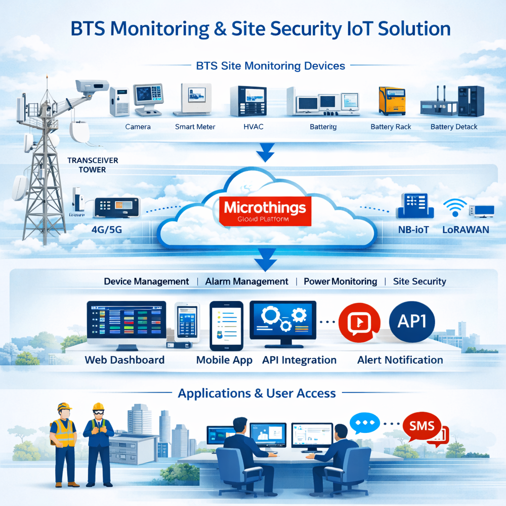 Melalui arsitektur IoT yang fleksibel dan scalable, Microthings dapat diterapkan pada berbagai sektor seperti smart city, energi, industri, lingkungan, air, gas, dan berbagai aplikasi monitoring lainnya.
